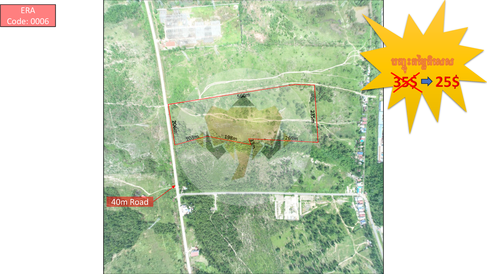 Description: ERA code: 0006ដីលក់បន្ទាន់ក្រោមទីផ្សារនៅខេត្តព្រះសីហនុទំហំដី: 102,500 ម៉ែត្រការ៉េទំហំផ្លូវ: 40 ម៉ែត្រ (ផ្លូវកៅស៊ូ)តម្លៃ: 25$/ម៉ែត្រការ៉េ急售!低于市场价的土地在西哈努克省。土地面积: 102,500 平方米道路宽度:40 米 (柏油路)价格:25$/平方米វេបសាយ/网站:elephantrealestate.netChannel Telgram:https://t.me/Elephant140694ទីតាំងដី/土地的地方:https://maps.app.goo.gl/kqcjDDACBuzRXgy47?g_st=ipcShow all descriptionTel: 011665717/093280188Telegram: https://t.me/ThouchChandara